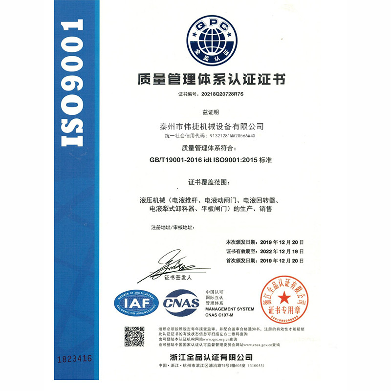 • 偉捷機械設備資質證書